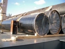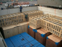 A S/Fは・・・m3/MT( 20ft3/LT) 重量(t) x ・・・(m3/MT) = m3 ユニフォームロードと比較して積み高さを設定する。(貨物が長いので、フォークリフト2〜3台を使ってで積載していくが、最後は宛がいで持っていけるのでフォークによる高さ制限はない。) |