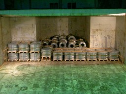 A フォークで持ち上げられるようダンネージ(標準L2.5m x D6cm x H1cm)を入れるので、必要容積は鋼板のみのものとならない。 ダンネージは・・・・m間隔ぐらいで、必ず・・・・に重ねていかねばならない。・・・・ダンネージを入れてしまうと鋼板がその重みで波打ってダメージとなる。 B 鉄の比重は・・・・g/cm3(・・・・t/M3)である。 L15.85m x D3.45m x H3.5cmの鉄板の重量は? 15.85 x 3.45 x 0.035 x ・・・・ = ・・・・t これを応用すると、鉄板の総積み高さがわかる。2500tの鉄板(上記のLDHとする)を230m2に積載する場合は、 鋼板のみの高さ = (2500t / ・・・・(t/M3) )/・・・・m2 = ・・・・m ダンネージを各鋼板間毎に入れるとして、 ダンネージの必要枚数= 1.38m / 3.5cm = 39枚 ダンネージ高さ= 39枚 x 1cm = 39cm 総高さ=・・・・m + 0.39m = ・・・・m これは、鋼板を4枚きっちり並べられることを想定して、はじめから16m x 3.6m=57.6m2 に・・・・を掛けて・・・・m2の面積としたが、実際の船では、鋼板をそんな風には積み付けできない。鋼板は均一でないし、船幅もそれに合ってはいない。 船では鋼板を互い違いに入れるチドリ掛け(Staggered stow)としたり、ブロークンスペースにダンネージを入れて高さを合わせながら積み付けていくのが常である。従って、計算した1.77mよりかなり嵩むこととなる。具体的な目安は、・・・・ または、・・・・ または、 ・・・・ と、考えればよい。(ダンネージの厚さが変われば回答は異なる) C 鋼板の上には・・・・等を追い積みすることができる。これは、船腹の積み容積&積み重量を効率よく満たす上で非常に有効です。(S/F混載の項参照)したがって、積み高さを予想することが重要になってきます。 |
