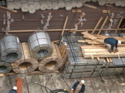 鋼材のS/Fは10〜20ft3/LTですが、Stowage Planを作成する場合、それはほとんど役に立たない。一種の貨物を積載し、TOTALトン数のみを知りたいだけならば使えないこともないが、普通在来船は混載が基本ですから Dead weightまで余裕があっても貨物や船の強度上追い積みできないとか、また、スペースに余裕があってもラッシングが取れない、フォークが届かない。段積み不可など条件が整わなかったりして額面通り積めないことが多々起こります。 したがって、在来船では各種鋼材の特徴を把握しつつそれらをうまく組み合わせ、Dead Weight 100% & Capacity100%を目指す(絶対無理だが)べく、独特の積み付けを施さなければなりません。 以下に代表的な貨物の基本的積み付けを記します。 |
