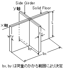 1.中甲板(ツインデッキ)の強度 局部荷重を計算しないと、重量物を中甲板に積載することはできない。 1)部材の寸法から求める方法 |