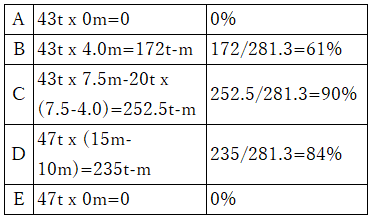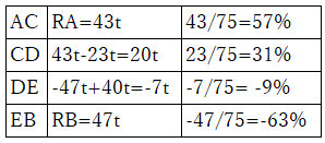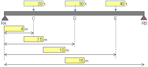 反力 RB=・・・・・・・・・・=47t RA=・・・・・・・・・・=43t |