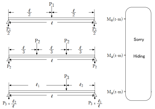 4.荷重分散用 H-beam強度の計算![]() 荷重分散用のH-beamはその扱いやすさ(重量)と強度から20cmH-beamを使用することが多い。 サイズ@・・cm x ・・cm, A・・cm x ・・cm, B・・cm x ・・4cm として、断面係数は461M3で、軟鋼として許容曲げモーメントは ・・・・t-mとなる。かかるTransbeam間を3mとすると、 許容曲げ最大1点荷重は・・・ x ・・m=・・t、許容せん断荷重は、・・ x ・・・ x ・・・ = ・・・t となる。 |