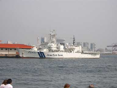 海上保安庁の船 これも中央突堤に入港してきたので、パチリと一枚! すいません。名前がわかりません。 |