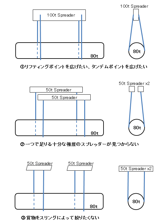 でも実際のLifting Point間は、12mある。などのときにSPREADERを使用します。