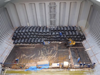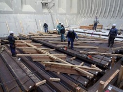 ・・・・・で追い積みする場合は、下段積貨物の上を縦横無尽に・・・・・・・が走り回れるよう、下積み貨物の上面をできる限りフラットに作ってやる必要がある。しかし、・・・・・でやる場合は、動き回らない。したがって、上積みされる貨物に不都合がない程度に上面を仕上げればそれでいい。いうなれば、・・・・・でやらないなら、時間かけてこんなに綺麗にする必要はない。無駄に時間と金をかけるなということだ。 ・・・・・・・・・で、港の付き合いならオペ込み ・・・・・万円/台くらいで手配できるから、私なら出帆を延ばすより、次港で・・・・・・を段取りする。ならば先港ではそれなりの積み付けとして労力軽減を目指せる。どうせ4段目や5段目は・・・・・でできない。 疑問を呈されて当然だ。ということを理解していただけたと思う。 |