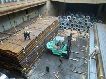 シングルデッカーの鋼材(Plate)積み付け&保定