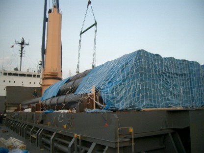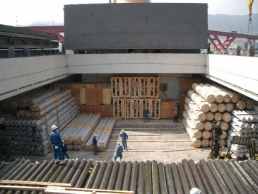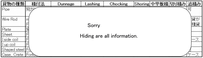 ここで怖いのが・・・・・・・・だが、それに耐えうるように・・・・・・・・・・を施している。例外として・・・・・・・・・で叩かれ、前後(船首尾)方向に飛び出すことがある。パイプは通常・・・・方向のラッシングをとらない。・・・・・線の加速度は小さいので・・・・・だけで必要がないからなのだが・・・・・・は避けてもらわなしゃあない。パイプが飛び出すくらいなら、他の貨物にもかなり影響がある。さっさと・・・・・を変えて欲しい。 |