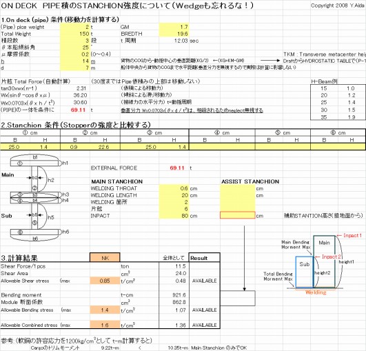 横揺れ・・・、大径管を・・・・・・、H-beamに当たる・・・(・・・・・・)、により計算を施し、必要なStopperの大きさを決定します。