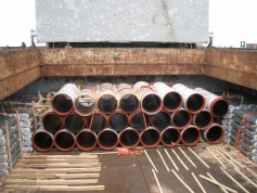 さあ、今まで保定は万能ではなく、その安全性には、・・・・・・が密接にかかわる事を説明してきた訳だが、Pipeの各段ダンネージ積み(コーティングパイプなどは荷主からこういうオーダーが入る)は、その最も顕著な例の一つと言えます。