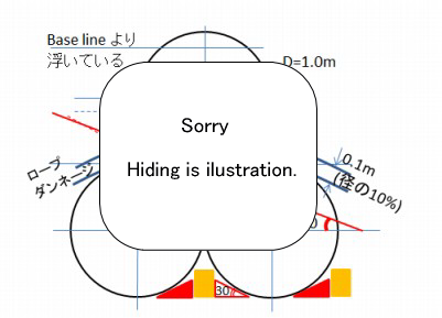図5はロープ径がパイプの10%であるが、目落としより・・°も小さい傾斜でパイプは転がりだす。これでも・・・・・が重要になってくる。