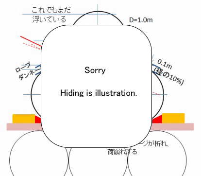 しかし、円筒(円柱)の場合に最も重要なのは、転がり摩擦係数である。これは静止摩擦係数の・・・分の1以下と言われる。静止摩擦係数が・・・だと、転がり摩擦係数は・・・・・以下なのです。θが・・・度程度で円筒は転がり始めるという事です。(細かいところはどうでもよくて)要するに船で制御できない・・・・・角度で円筒は動く(転がる)ことになりますね。