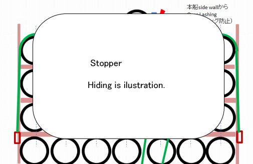 在来船ツインデッカーならば、同様にPLATEを積む場合であっても、・・・側、・・・側を、それぞれ・・・し、それらはまず、本船に設置された・・・から堅固にLashingされる。左図のとおりです。