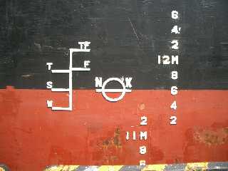F : 夏期淡水満載喫水線 T : 熱帯満載喫水線 S : 夏期満載喫水線 W : 冬期満載喫水線 |