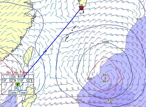 台風は一般流(貿易風・偏西風)によって移動する。低緯度帯では小笠原高気圧のまわりを吹く北東貿易風によって移動し、その後、偏西風(南西風)帯に入り、その影響によって北東へ進むことが多い。 そして、台風は一般流(貿易風→偏西風)と逆向きの風が吹く左半円の方が相殺されて風が弱く、右側は一般流との和となるため風が強いと言われるためか、一般的に左半円が可航半円(または避航半円)と呼ばれるが、それは右半円が危険半円と言われることに対するのみの呼称に近いと考えた方がよい。右半円に比べると比較的緩やかになるだけだ。要するに、不幸にも航行上二者択一に及んだ場合の苦渋の選択肢であって、積極的航行区域ではないということです。ましてや停泊時における台風通過が左半円だからと安易に考えることができるとするものではない。停泊地の地形や独特の理由により左半円になった方が風:雨・波の強くなる場合もある。だから台風の右だろうが左だろうが危険なのです。 近年はセオリー通りに移動せず迷走する台風も多いことから、あらゆる情報を活用し一層注意をするに越したことはない。安全の観点からは、とにかく出来る限り、影響のない程度台風の中心から遠く離れて航行する。無理して中心に近寄る必要はない。 でも商船ではそればっかりも言ってられないのでねえ・・・。難しいところです。 日本近海において台風に遭遇することが予想され、いわゆる避航しなければならないとするときは、大きくわけて一般的に二つのルートが定義されている。 (1)日本近海から南方へ下る航海中と、これとは逆に (2)南方から日本に向けて北上しつつある際である。よく台風の左半円は可航半円であるといいますが、それは(1)の場合であって、(2)の場合はしんどい。 前者の場合には、予報円から・・・・・mile離れて台風の前面を突っきり、可航半円である・・・・・(但しこの場合も台風の中心から十分に離れてその影響を避ける)を通過します。 これは、絶えず追波・追風を受け安定した航行(ただし船によってはブローチングで危なっかしく走れないこともある)が出来ると考えられるからです。また、前面通過で左半円を通過するということは結果的に日本沿岸を航行することになり、最悪の場合でもシェルタリングなどの二次的動作を作りやすい。逆に十分な距離を保ったから右半円通過で大丈夫だと高を括っても、台風が・・・・・場合には逃げ場を失ってえらい目に遭う。 |